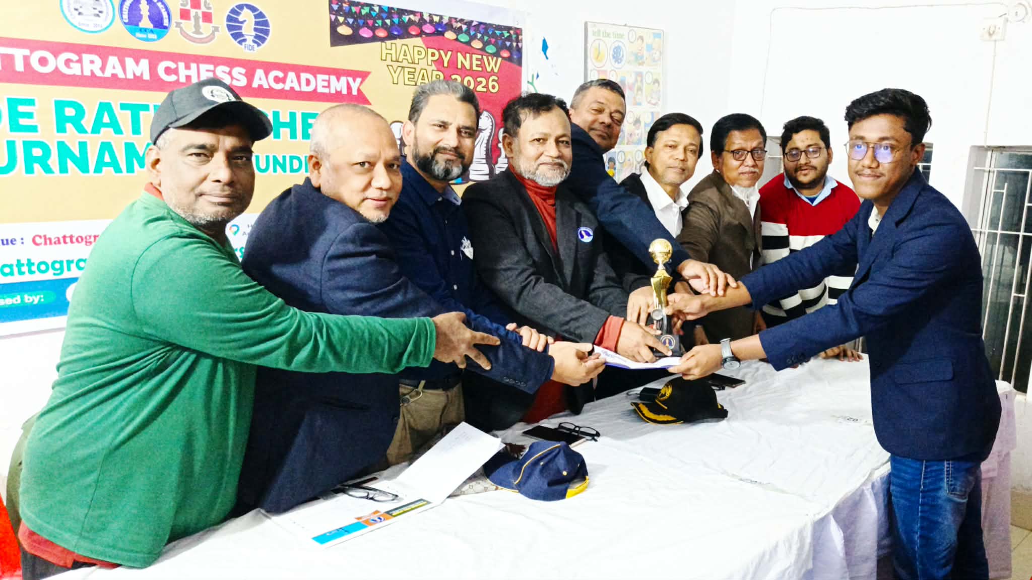 চট্টগ্রাম চেস্ একাডেমি (অনুর্ধ্ব- ২০) রেটিং দাবা টুর্নামেন্টে প্রাঞ্জল বড়ুয়া চ্যাম্পিয়ন, নাজিফ নিয়াজ রানার-আপ চট্টগ্রাম চেস্ একাডেমি আয়োজিত ৩দিন ব্যাপী (অনুর্ধ্ব-২০) রেটিং দাবা টুর্নামেন্ট ০১ জানুয়ারি ২০২৬ শুরু হয়ে ৩ জানুয়ারি ২০২৬ শেষ হয়। টুর্নামন্টে ২৫জন রেটেড দাবাড়ুসহ মোট ৪৪জন অংশগ্রহন করে। ৩ জানুয়ারি ২০২৬ অনুষ্ঠিত ৫ম রাউন্ড খেলা শেষে সাড়ে ৪.৫পয়েন্ট পেয়ে টাইব্রেকিং এগিয়ে থাকায় প্রাঞ্জল বড়ুয়া অপরাজিত চ্যাম্পিয়ন এবং নাজিফ নিয়াজ অপরাজিত চ্যাম্পিয়ন রানার-আপ হবার গৌরব অর্জন। ৪ পয়েন্ট টাইব্রেকিং সৈয়দ সফিউল মুসনামিন ৩য়, আহনাফ আবিদ ঈসান ৪র্থ, আহবাব সোলাইমান ৫ম স্থান, ৩.৫পয়েন্ট তুসিন তালুকার ৬ষ্ট এবং আবিদ মাহাদি সাদ ৭ম স্থান পুরস্কার লাভ করেন। এছাড়াও ক্যাটাগরিতে পুরস্কারে অনুর্ধ্ব ১৬ জাজবির নুর জারিফ, অনুর্ধ্ব ১২ অনিন্দ্য রিক দ্বিগবিজয় অনুর্ধ্ব ০৮ আহমেদ আফরাজ আরসান এবং তৌহিদা বেগম সেরা বালিকা পুরস্কার লাভ করেন। টুর্নামেন্ট শেষে পুরস্কার বিতরণ অনুষ্ঠান চট্টগ্রাম চেস্ একাডেমির প্রতিষ্ঠাতা পরিচালক রাকিব-উল-ইসলাম সাচ্চুর সভাপতিত্বে এবং পরিচাল মোঃ নুরুল আমিন এর সঞ্চালনায় অনুষ্ঠানে উপস্থিত ছিলেন চেস্ কোড একাডেমির পরিচালক মহসিন জামাল পাপ্পু , চট্টগ্রাম চেস্ একাডেমির প্রশিক্ষক ও ন্যাশনাল মেরিটাইম ইনস্টিটিউট এর প্রিন্সিপাল ক্যাপ্টেন আতাউর রহমান, চট্টগ্রাম চেস্ একাডেমির এর পরিচালক ও উইলো ইন্টারন্যাশনাল স্কলের প্রিন্সিপাল সুফিয়ান আশরাফ, পরিচালক তৌহিদুল করিম, সিসিপিএ সাংগঠনিক সম্পাক জাহাঙ্গীর আলম, সহ-সাগঠনিক সম্পাদক রুহুল আমিন, প্রশিক্ষক আহমেদ হোসেন মজুমদার, সিসিপিএ অর্থ সম্পাক সিসিএ প্রশিক্ষক আসিফ মাহমুদ প্রমুখ। টুর্নামেন্ট চীফ আরবিটার হিসাবে রাকিব-উল-ইসলামডেপুটি চীফ আরবিটার মোঃ নুরুল আমিন এবং আরবিটার হিসাবে আসিফ মাহমুদ দায়িত্ব পালন করেন।